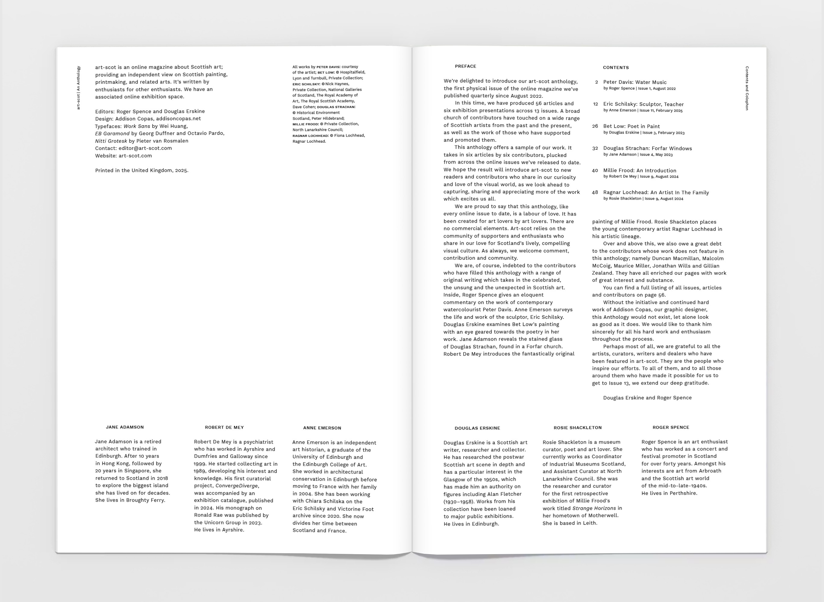 Editorial design for the first printed edition of art-scot. An Incomplete Anthology features analysis, interview and research published on Scottish artwork from 2022—2025.